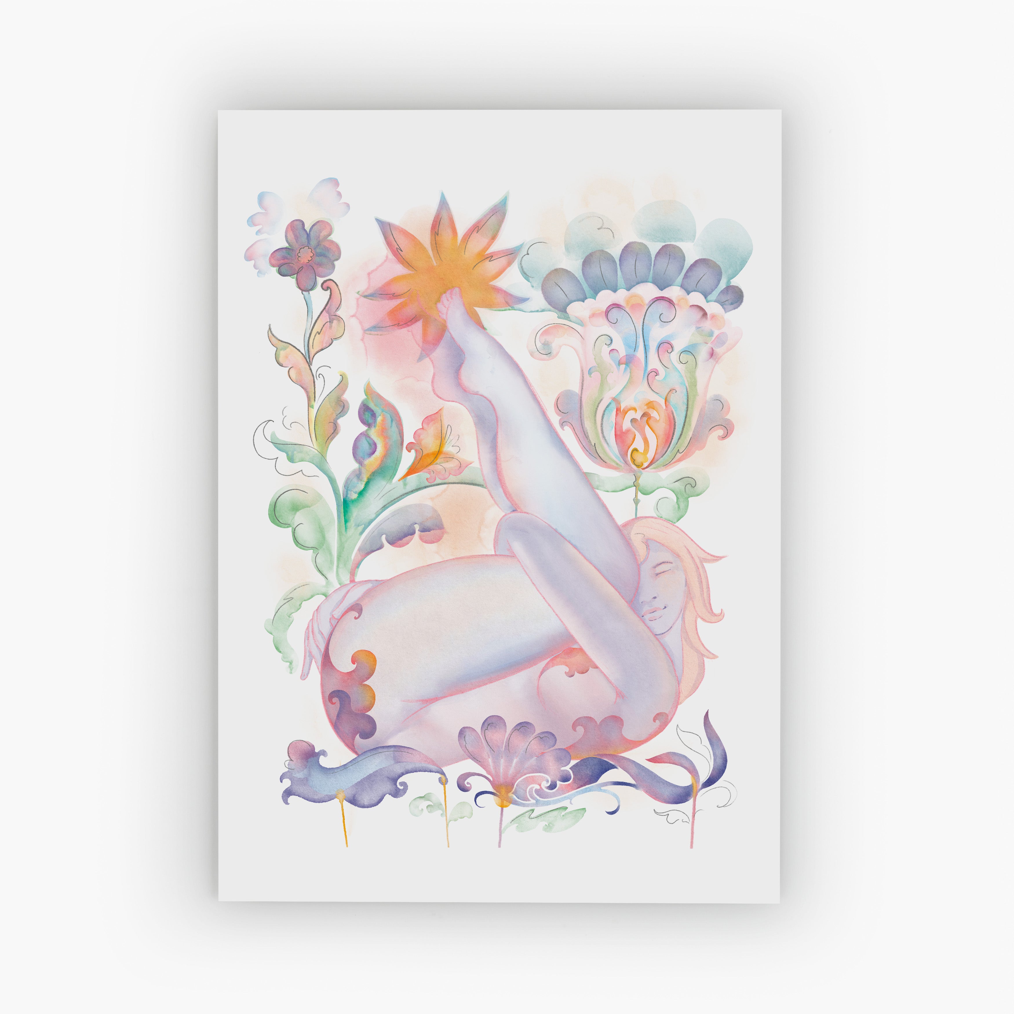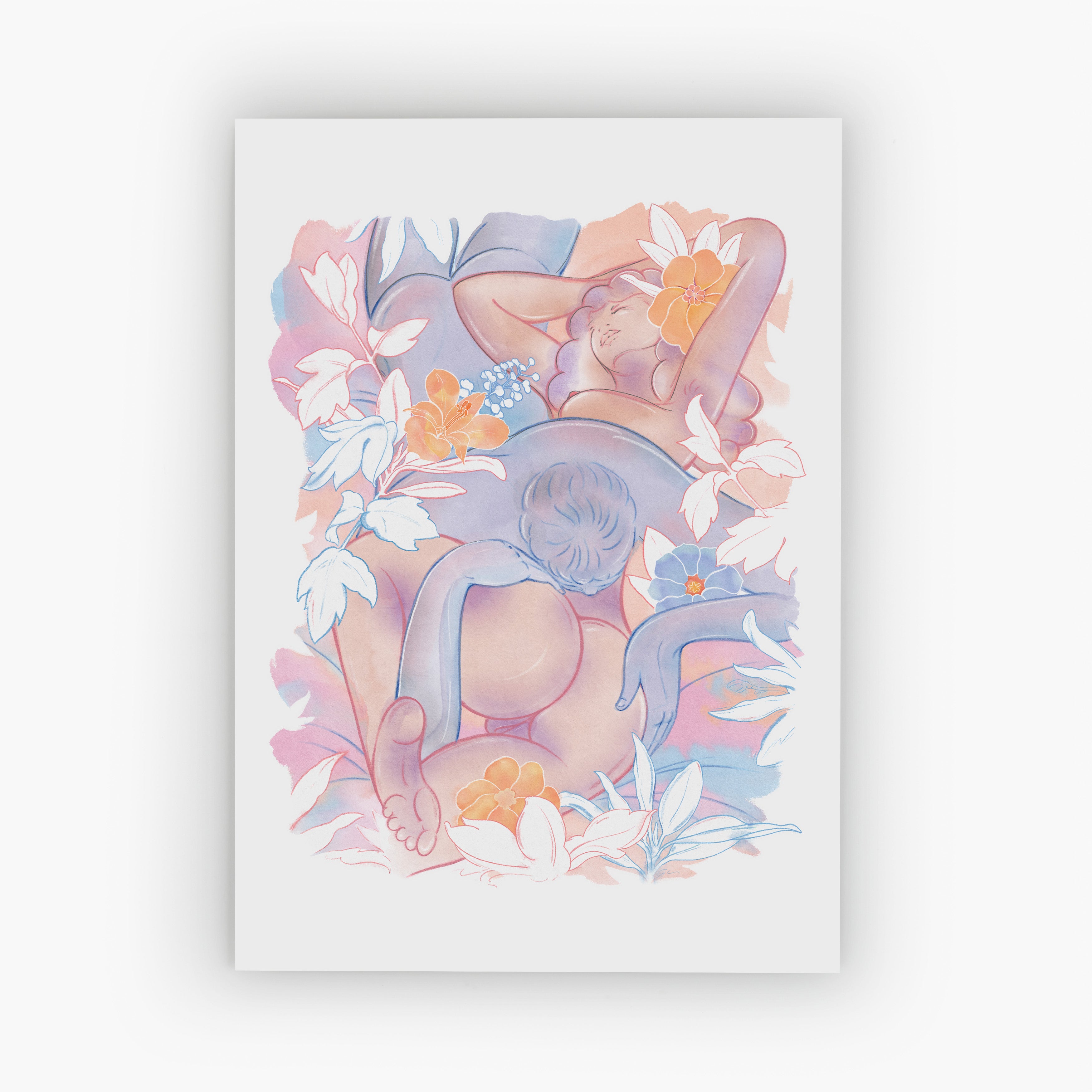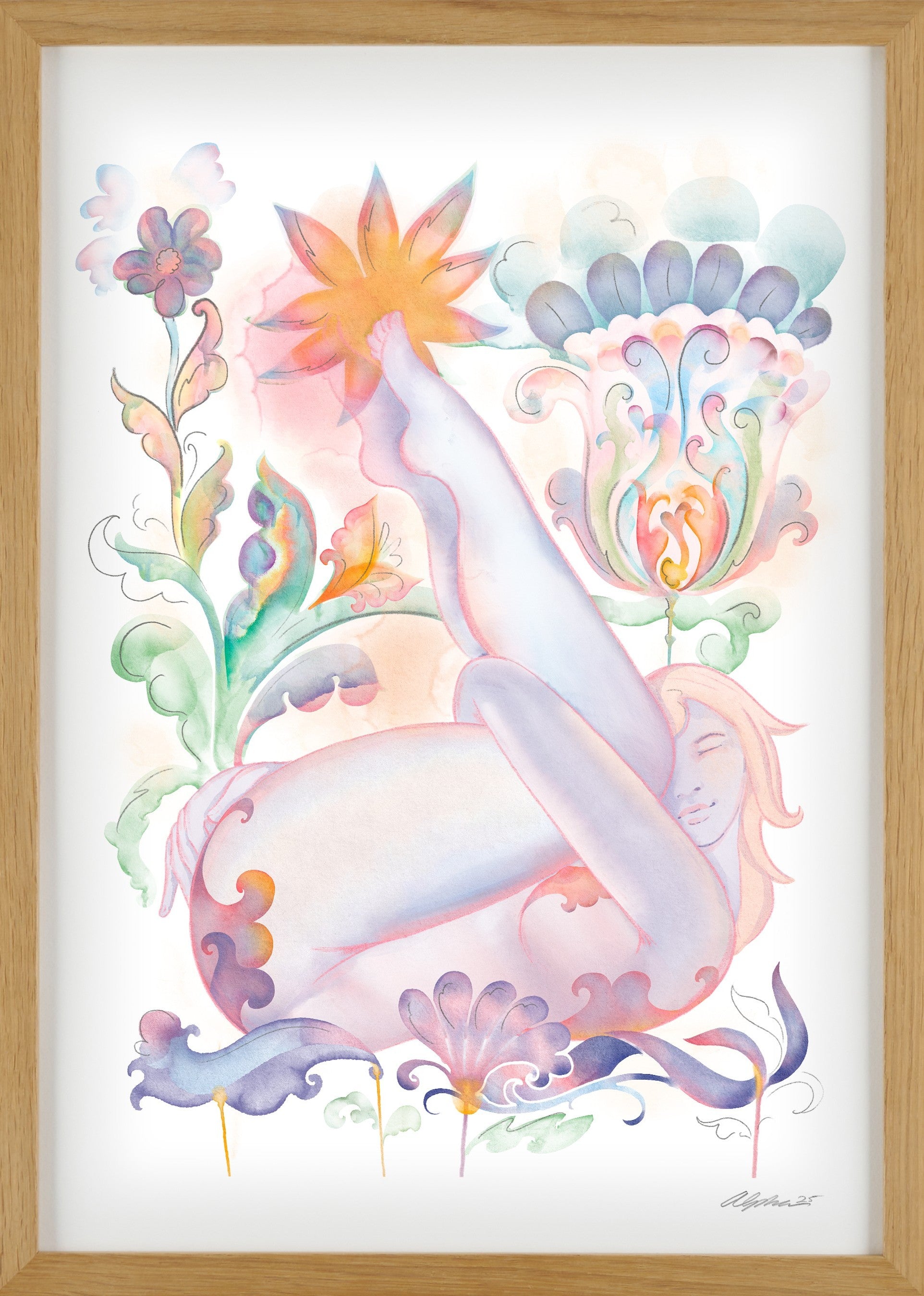Each piece in this drop speaks to that feeling of emergence—of being stirred by something just beneath the surface. A new energy, a quickening. The soft call of vitality returning. These artworks explore the blooming of love, sensuality, and desire—mirrored in the language of nature: petals unfolding, color spreading, forms in motion. They hold the moment where beauty begins to open.