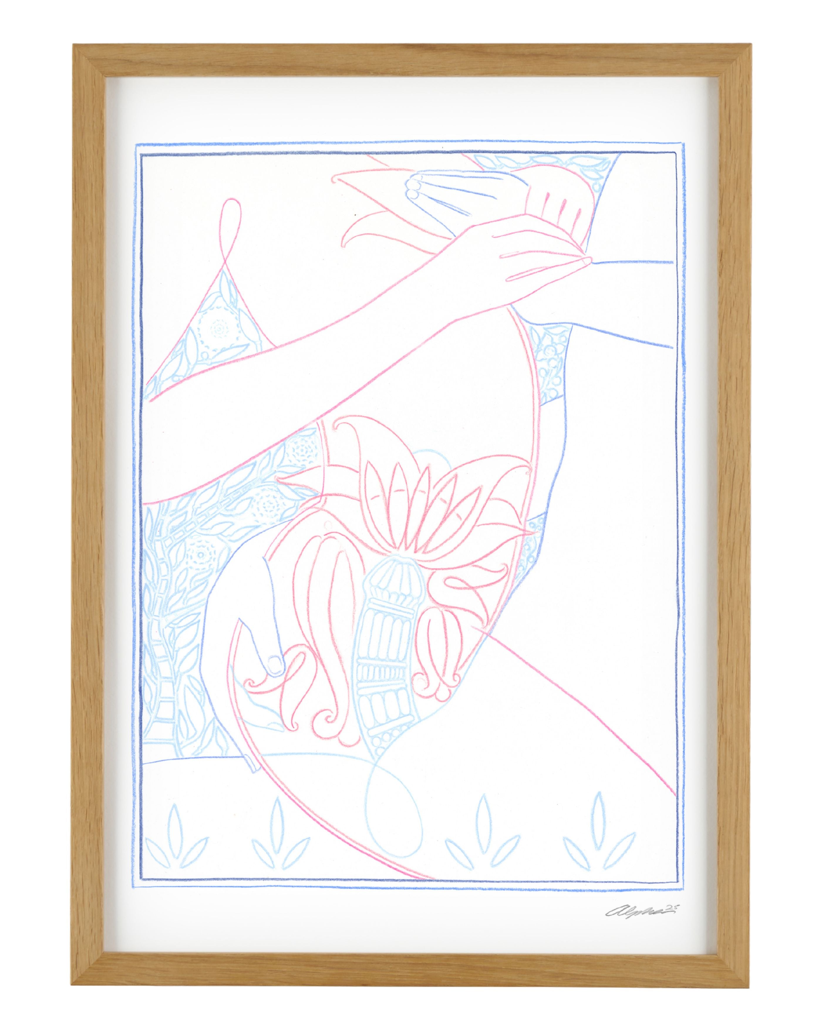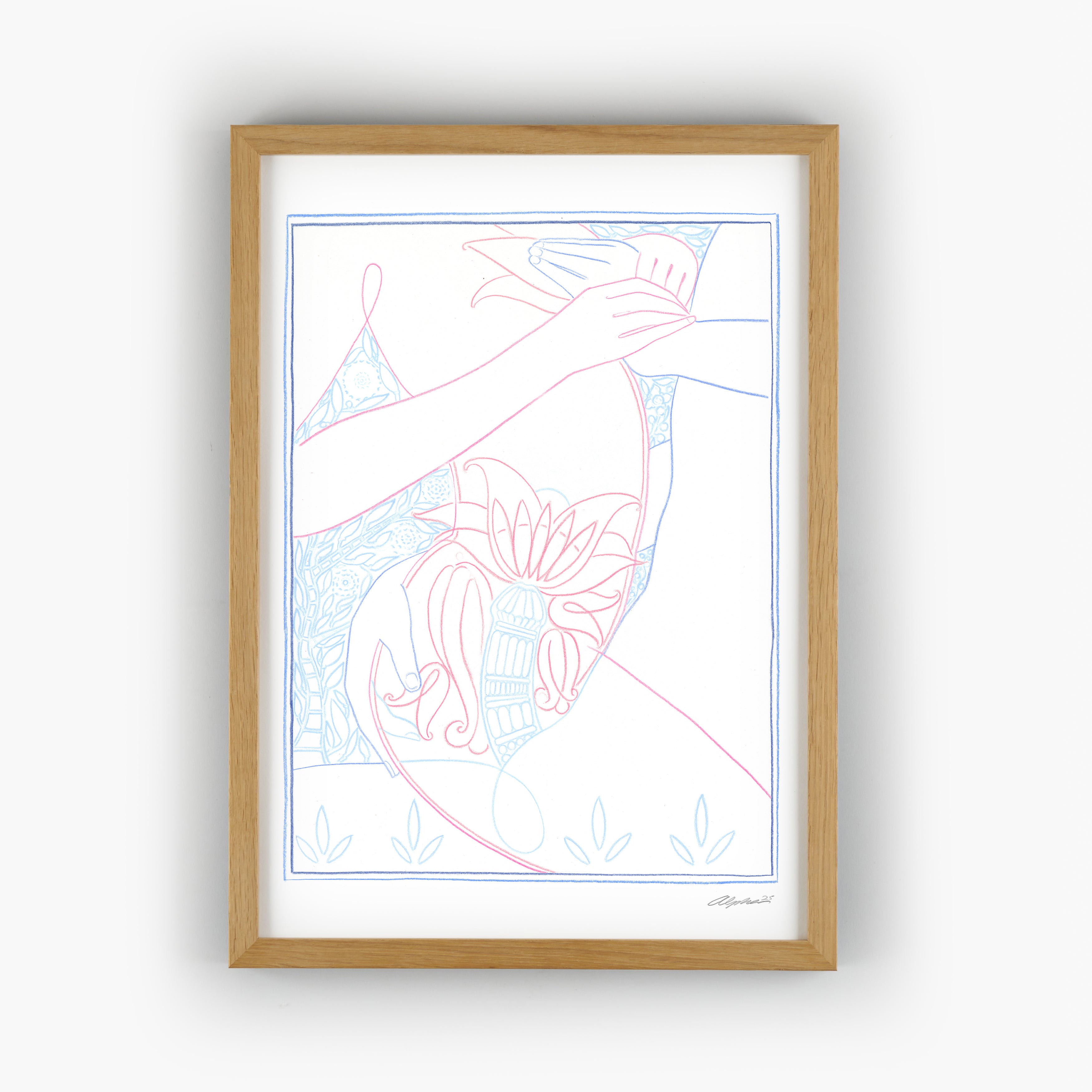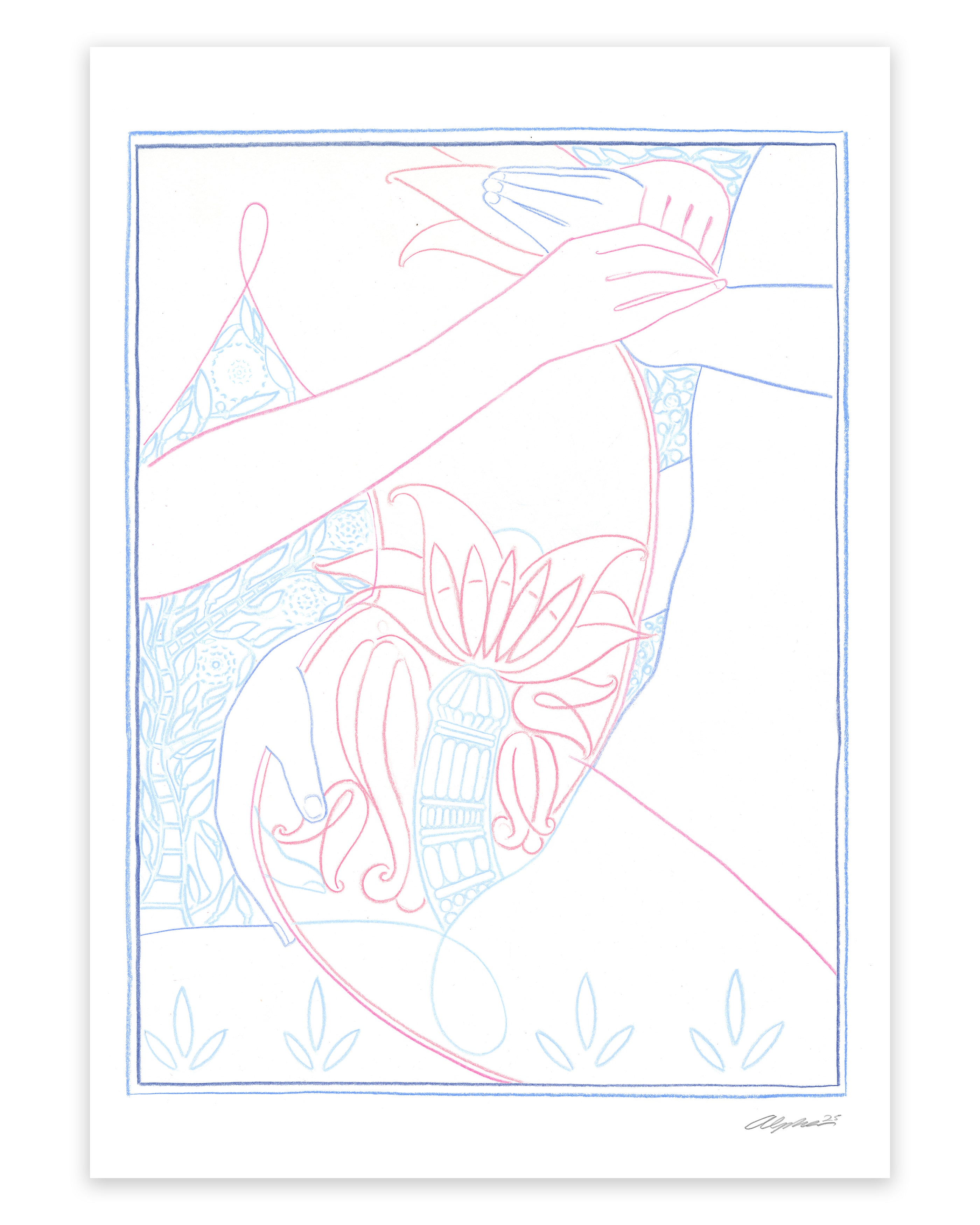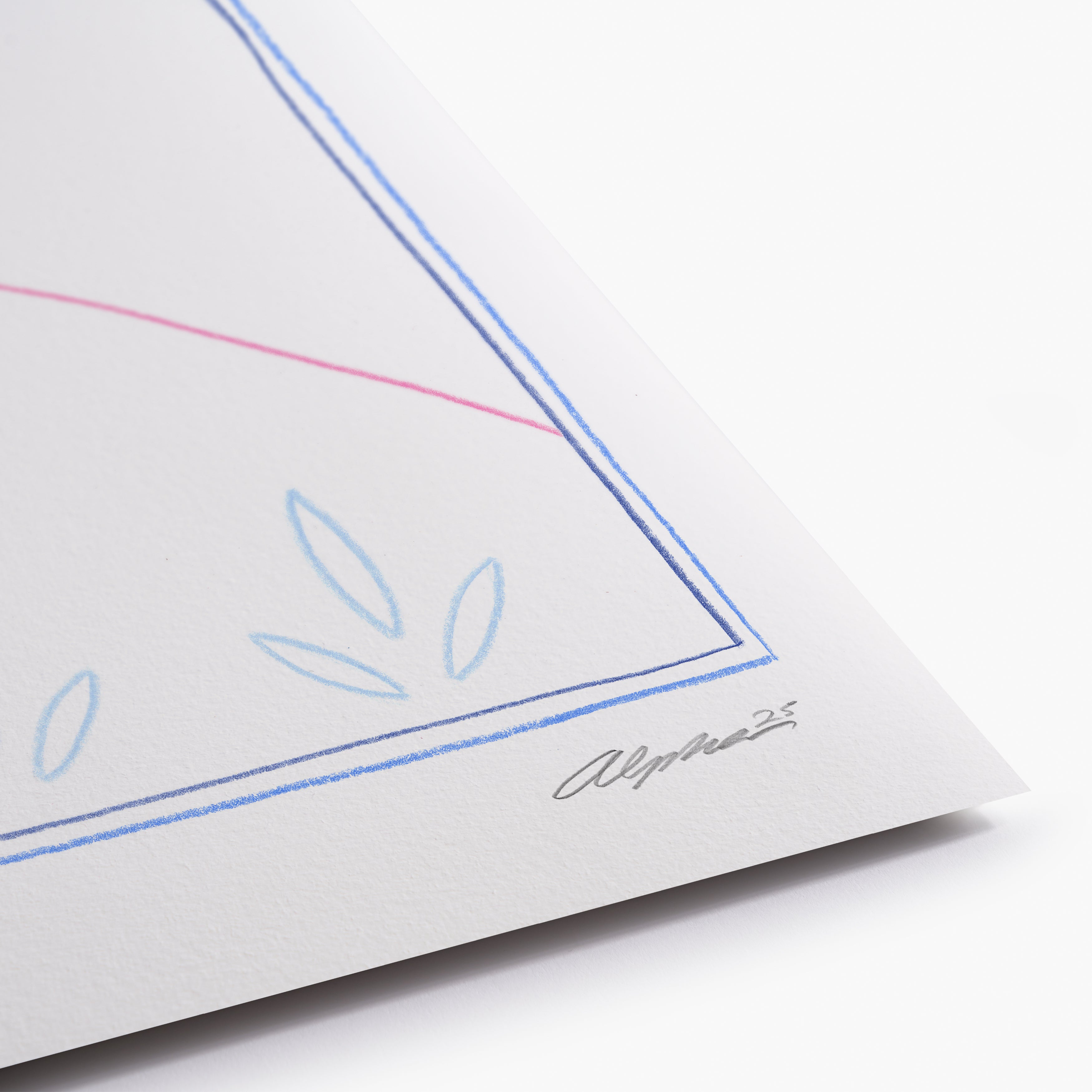 Expanding Universe in Blue and Pink is an early version I created and never released until now. This edition returns to pure line work and my two color palette, letting the intimacy and movement of the figures stand on their own. It reflects the idea that creation is not only cosmic but internal, with love as the force that expands our inner world.